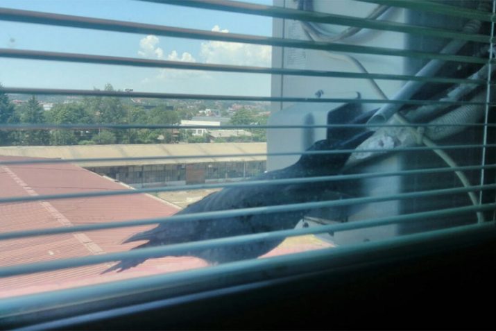 Vrućina, koja je danas zahvatila Banjaluku, primorala je vranu da osvježenje traži u vodi koja kapa iz klima-uređaja.