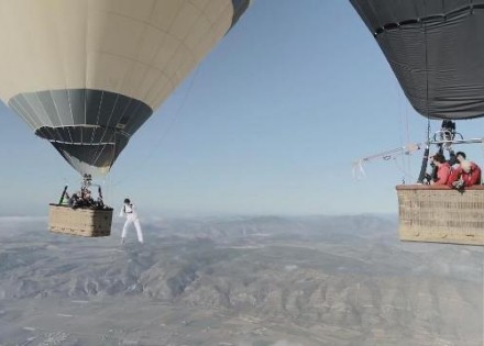 Zapravo, on i njegove kolege su šetali po žici razapetoj između dva balona.