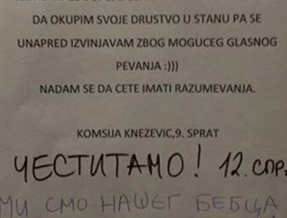 Evo kako su komšije ragovale na poruku jednog tate, koji je najavio žurku u svom stanu, povodom proslave rođenja kćerke, prenosi Kurir.