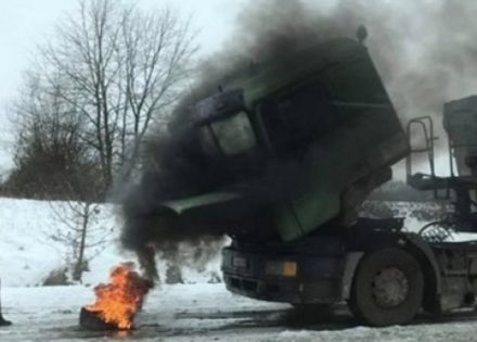 Naime, kako javljaja lokalna televizija, jedan vozač kamiona je u pokušaju da odledi tekućinu u hladnjaku zapalio gumu kako to uspio.