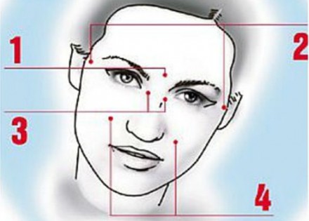 Tačka 1: Ako produžite liniju obrva, ova tačka će se naći direktno iznad početka nosa.