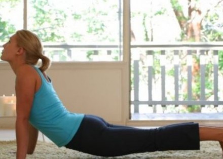 2. Lezite na leđa na ravnoj tvrdoj podlozi. Ispružite noge, ruke su uz tijelo sa dlanovima okrenutim ka podu. Udahnite kroz nos, dignite noge (malo preko 90 stepeni) i podignite glavu tako da se što više približite grudima. Lagano uz izdisaj spustite glavu i noge.